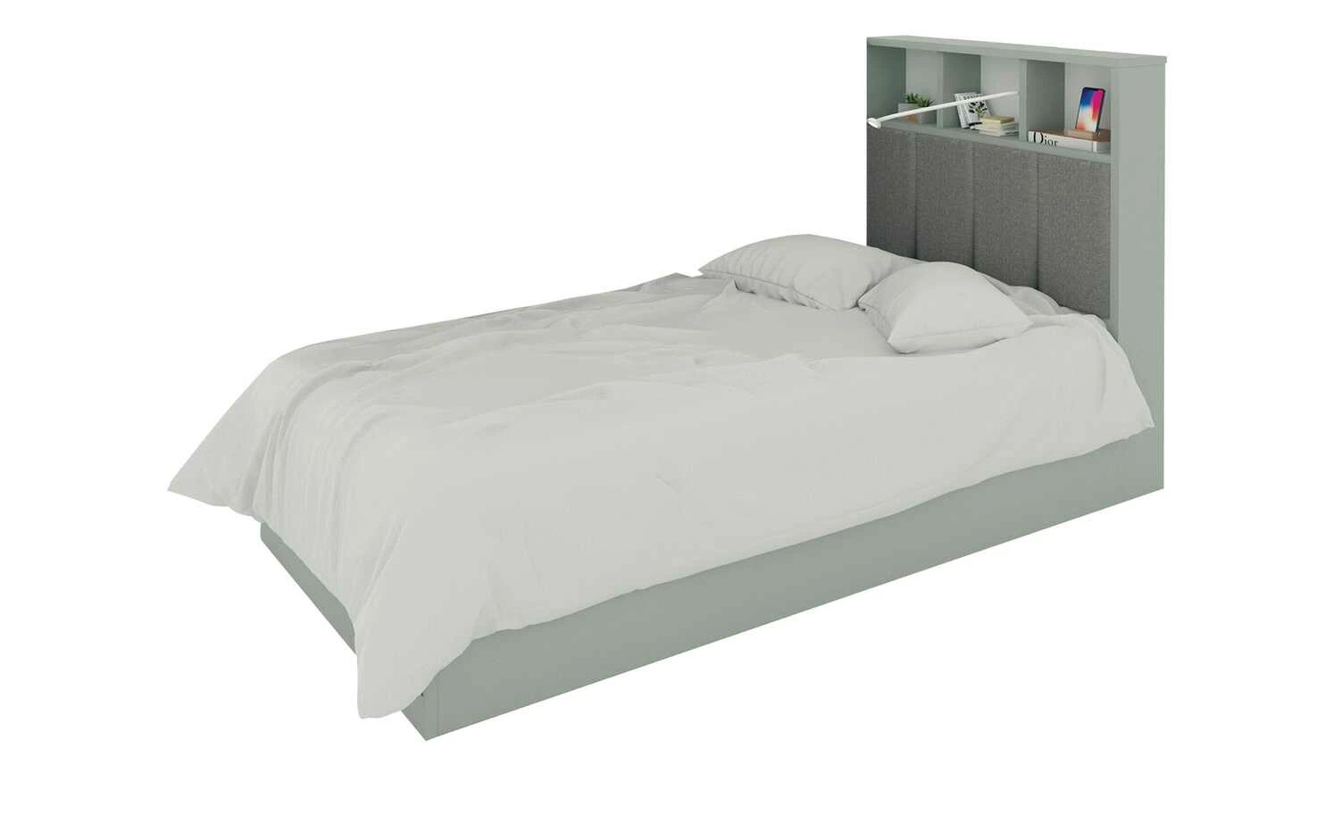 - Lieferumfang / mitgeliefertes Zubehör: Lattenrost , gepolstertes Kopfteil mit Regal, Lampe