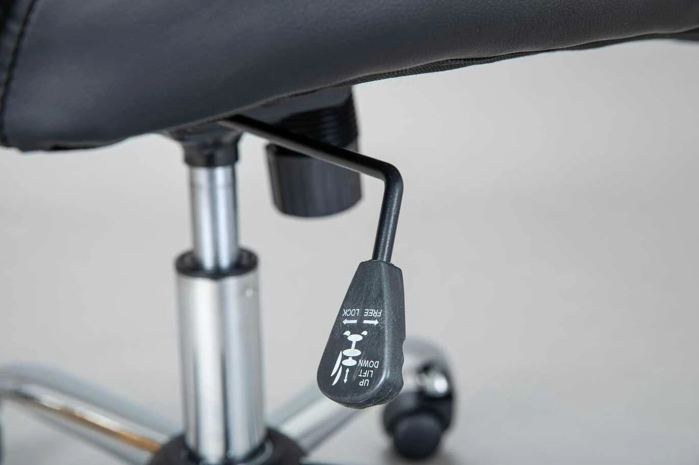 Dieser Drehstuhl passt mit seinem schwarzen Kunstlederbezug und dem verchromten Gestell zu nahezu allen Schreibtisch-Stilen. Platzieren Sie ihn im Arbeits-, Kinder- oder Jugendzimmer: Der Drehstuhl ist vielseitig einsetzbar. Dank des seitlichen Griffs lässt sich die Sitzhöhe kinderleicht zwischen 46 und 52 Zentimeter verstellen.