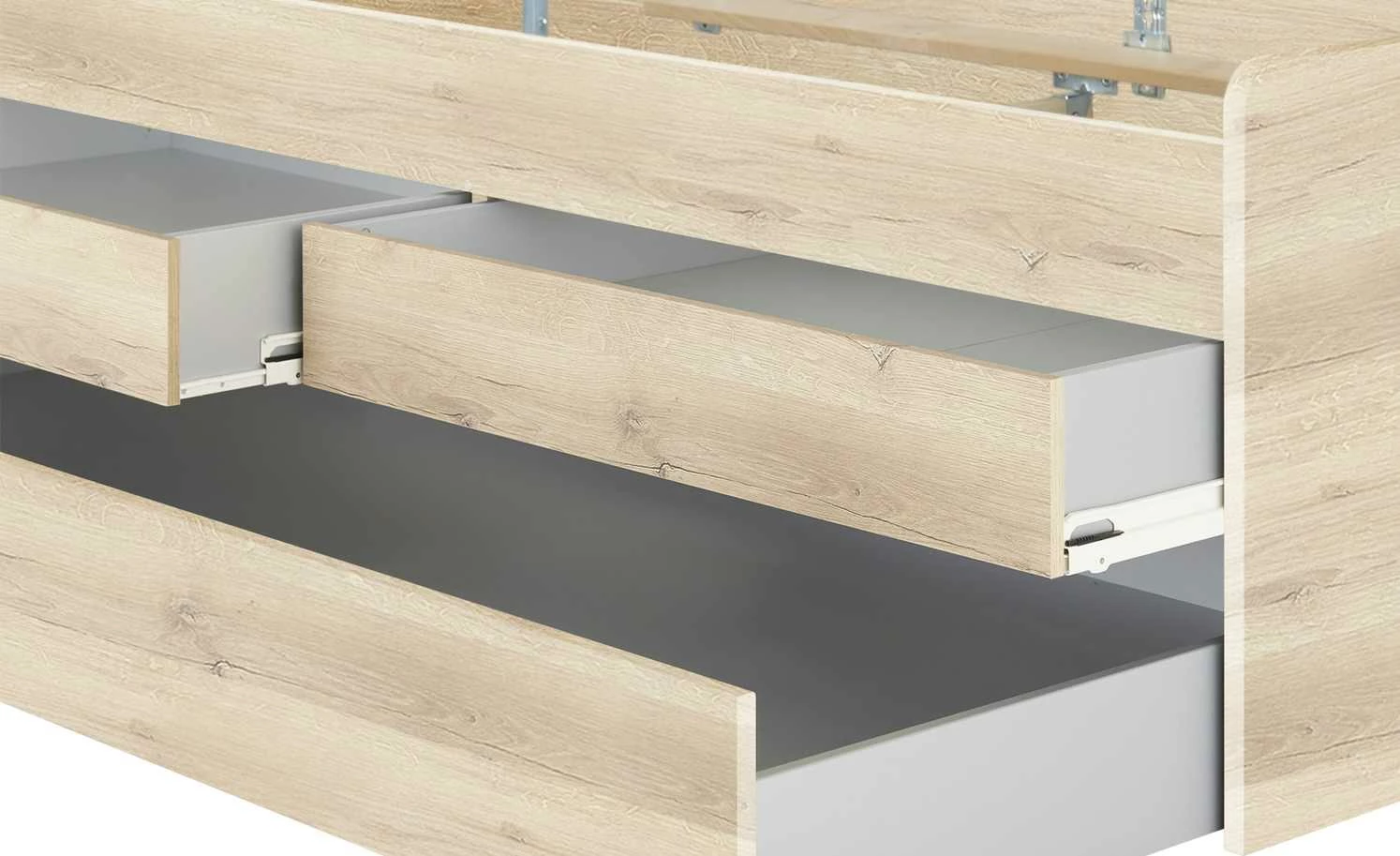 - Mehr zu Ausstattung / Funktion: Mit 2 kleinen und 1 großen Schubkasten. Großer Schubkasten mit Rollen kann als Gästebett und als Stauraum verwendet werden. (Liegefläche 90×190 cm, max. Matratzenhöhe 18 cm)