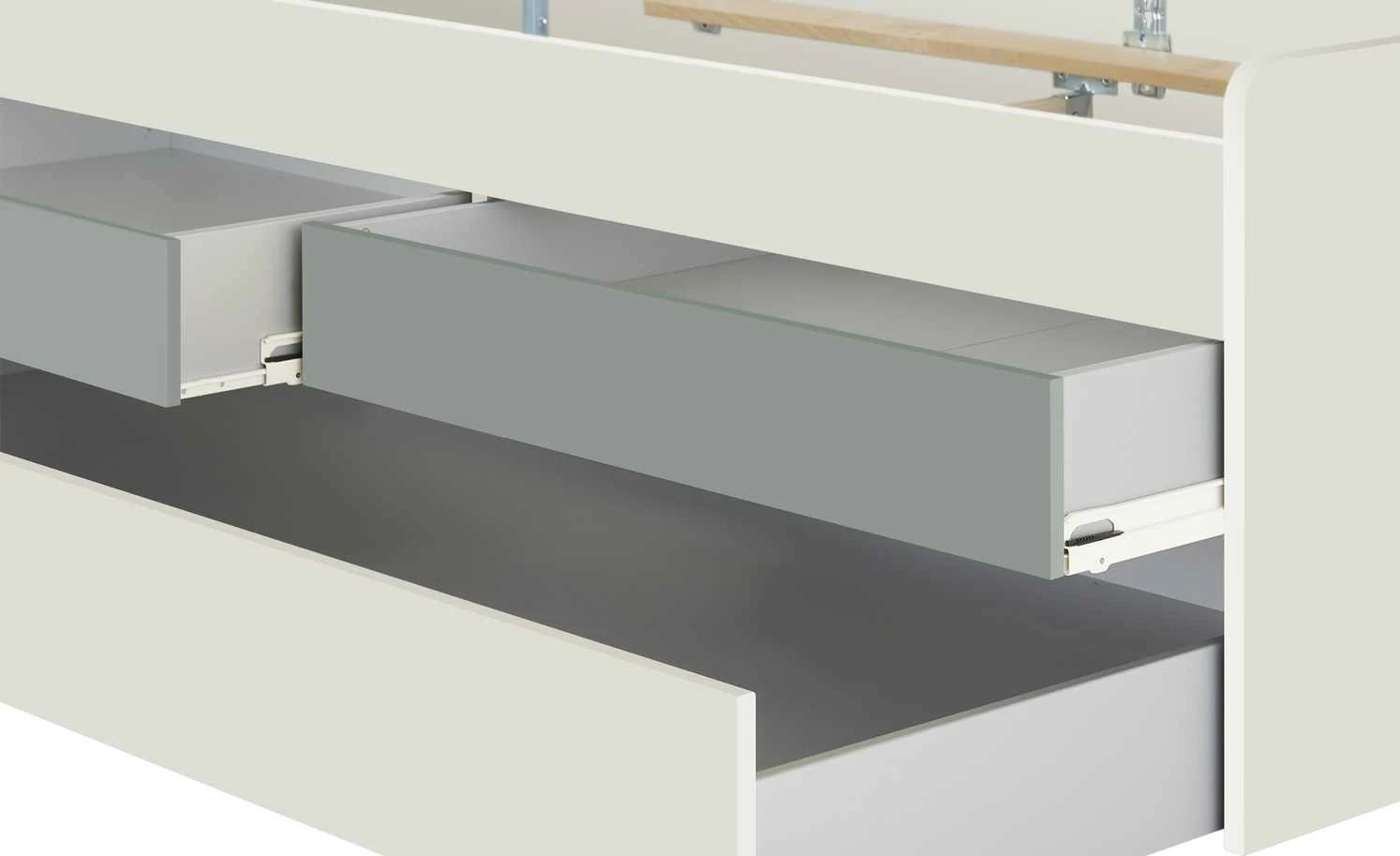 - Mehr zu Ausstattung / Funktion: Mit 2 kleinen und 1 großen Schubkasten. Großer Schubkasten mit Rollen kann als Gästebett und als Stauraum verwendet werden. (Liegefläche 90×190 cm, max. Matratzenhöhe 18 cm)