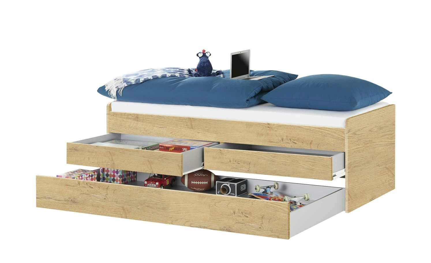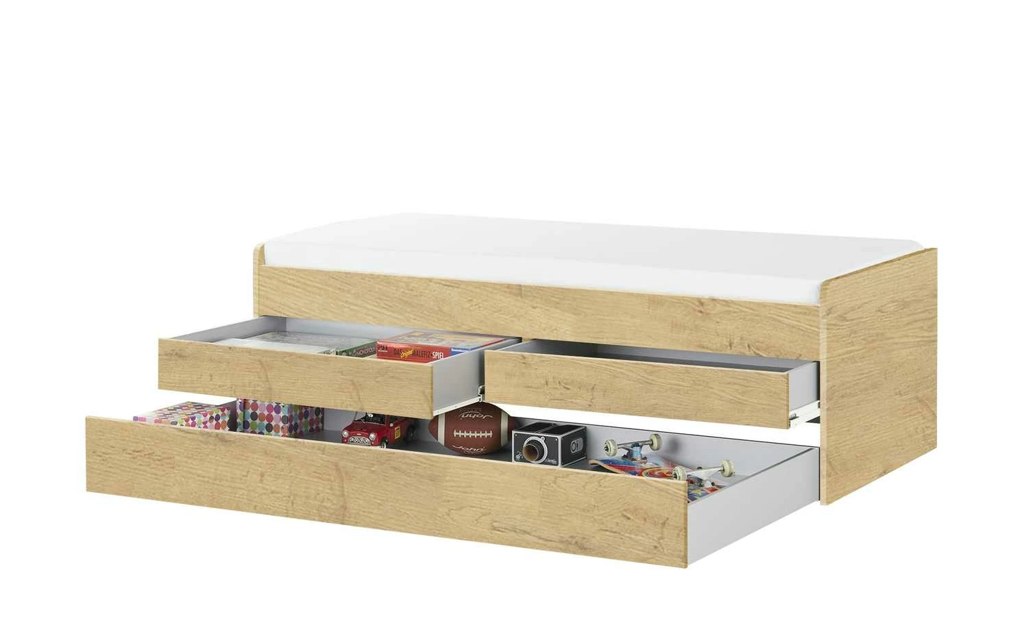 - Mehr zu Ausstattung / Funktion: Mit 2 kleinen und 1 großen Schubkasten. Großer Schubkasten mit Rollen kann als Gästebett und als Stauraum verwendet werden. (Liegefläche 90×190 cm, max. Matratzenhöhe 18 cm)