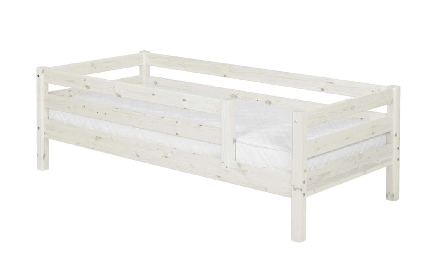 Flexa Classic von der Marke FLEXA ist ein dezentes Bettgestell für das Kinderzimmer. Es wird mit einem passenden Lattenrost geliefert. Der erhöhte Rand schützt das Kind davor, aus dem Bett herauszufallen. Das Bett ist aus massiver Kiefer gefertigt. Die Oberfläche ist lasiert. Die natürliche Holzmaserung können Sie gut erkennen. Flexa Classic ist vom TÜV Süd geprüft. Und mit dem GS-Siegel zertifiziert.