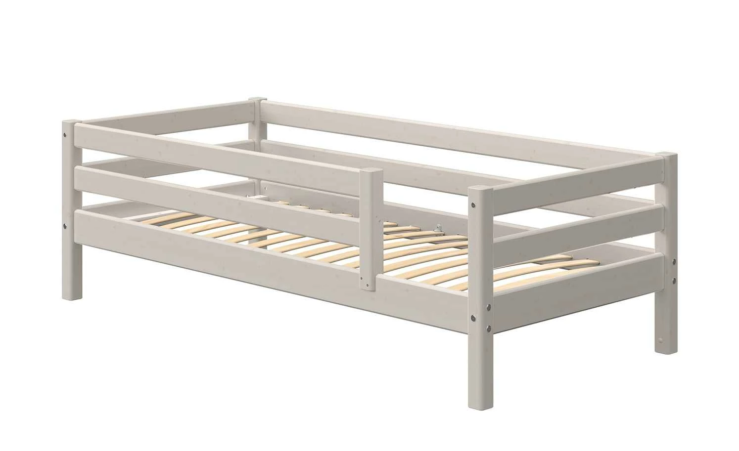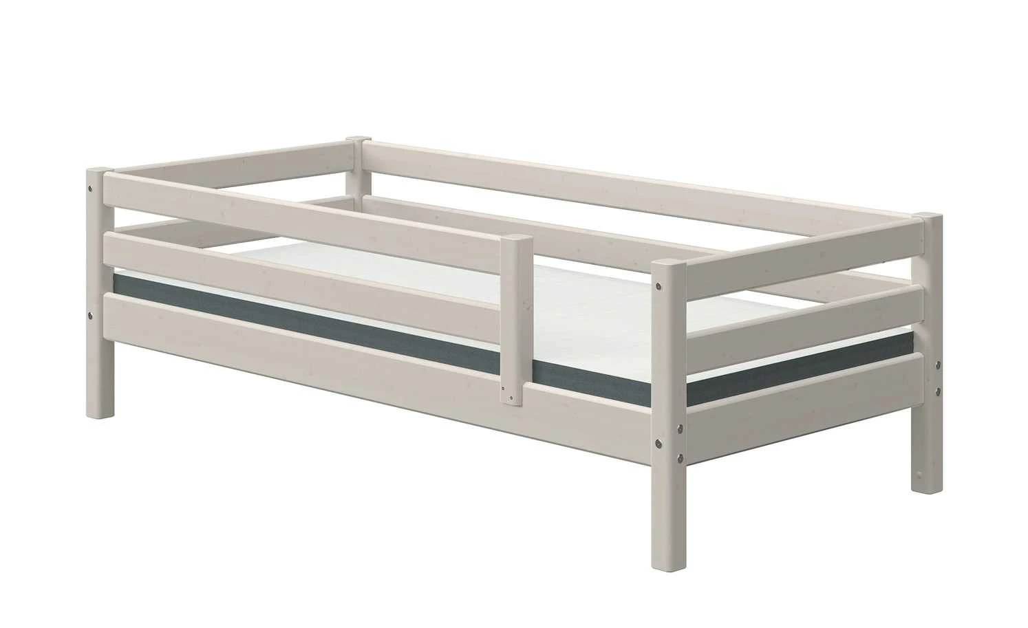 Flexa Classic von der Marke FLEXA ist ein dezentes Bettgestell für das Kinderzimmer. Es wird mit einem passenden Lattenrost geliefert. Der erhöhte Rand schützt das Kind davor, aus dem Bett herauszufallen. Das Bett ist aus massiver Kiefer gefertigt. Die Oberfläche ist lasiert. Die natürliche Holzmaserung können Sie gut erkennen. Flexa Classic ist vom TÜV Süd geprüft. Und mit dem GS-Siegel zertifiziert.