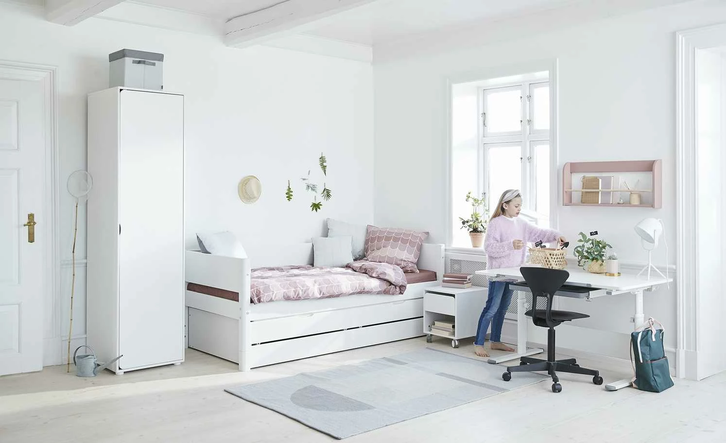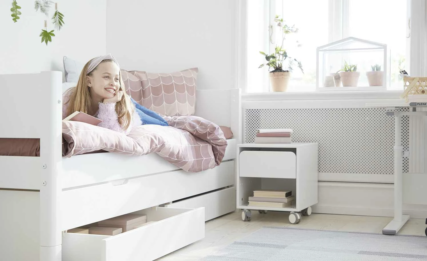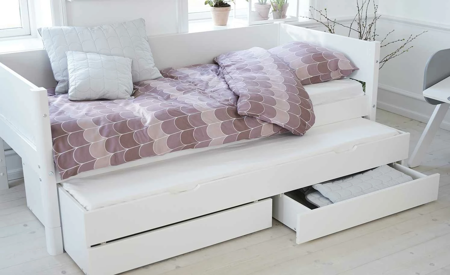 FLEXA Bett mit Ausziehbett und 2 Schubkästen Flexa White