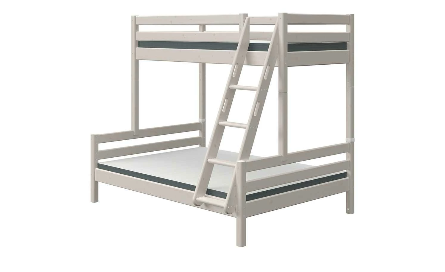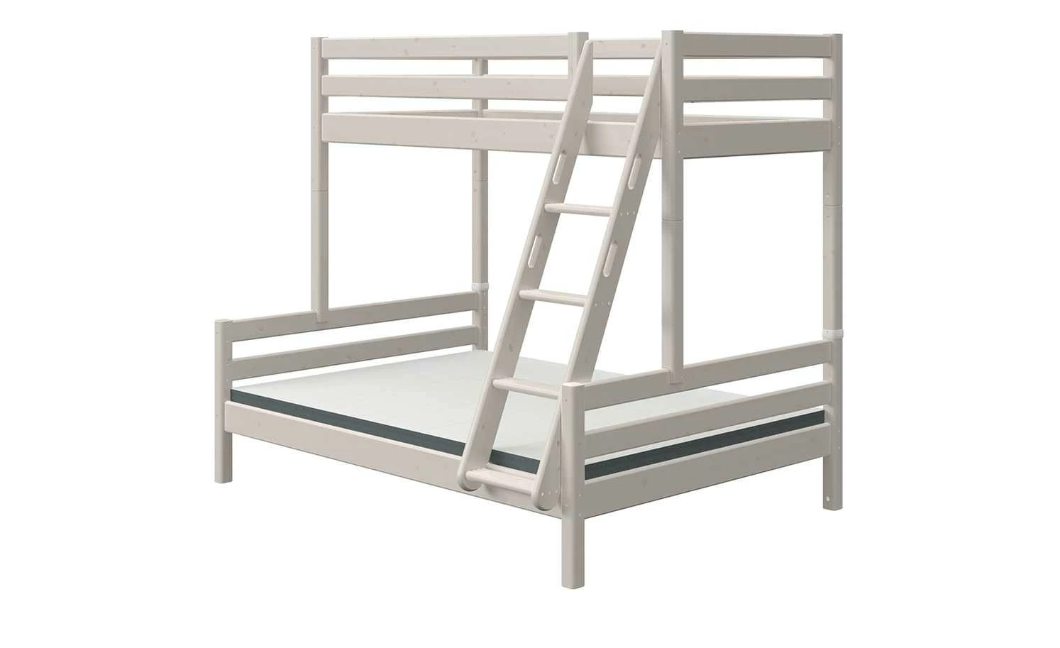 Im Etagen- / Kombibett Flexa Classic können zwei Kinder schlafen. Oder aber die untere Bettfläche wird als Entspannungsoase genutzt. Das untere Bett hat eine Liegefläche von 140 x 200 Zentimetern. Das Obere eine Fläche von 90 x 200 Zentimetern. Die Lattenroste für beide Betten sind im Lieferumfang enthalten. Wie auch die anderen Modelle der Serie, ist Flexa Classic aus massiver Kiefer hergestellt worden.