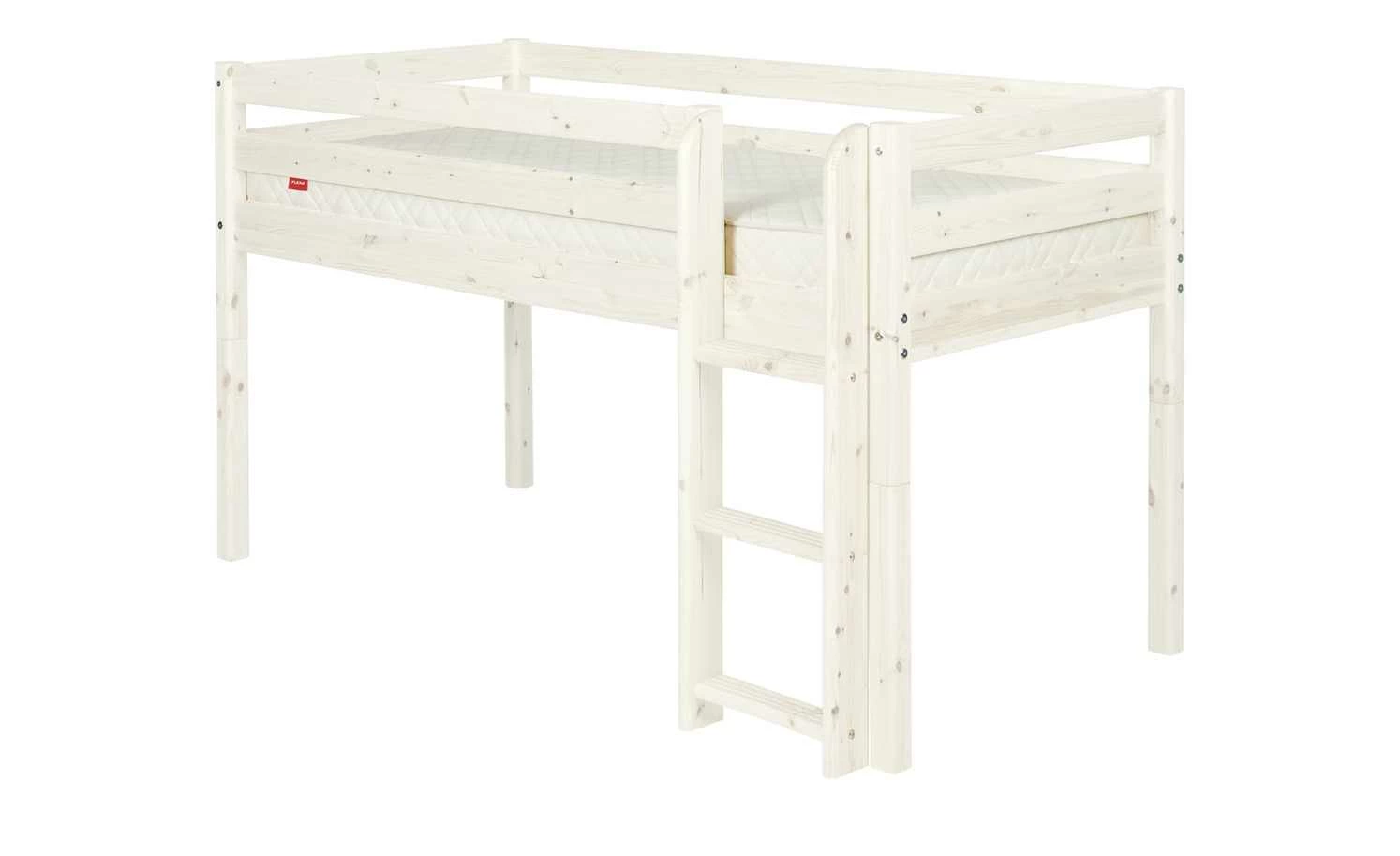 Mit dem halbhohen Bett Flexa Classic können Sie im Kinderzimmer zusätzlichen Raum zum Spielen schaffen. Dank der erhöhten Liegefläche bleibt darunter Platz, um dort eine Kommode zu platzieren. Ganz toll wäre auch eine kuschlige Höhle zum Spielen. Beim Design wurde auf eine naturbelassene, neutrale Optik gesetzt, sodass das Bett in Mädchen- und Jungenzimmer gleichermaßen passt. Mithilfe der Leiter kann Ihr Kind selbstständig in das Bett klettern. Die hohe Umrandung dient als Absturzsicherung.