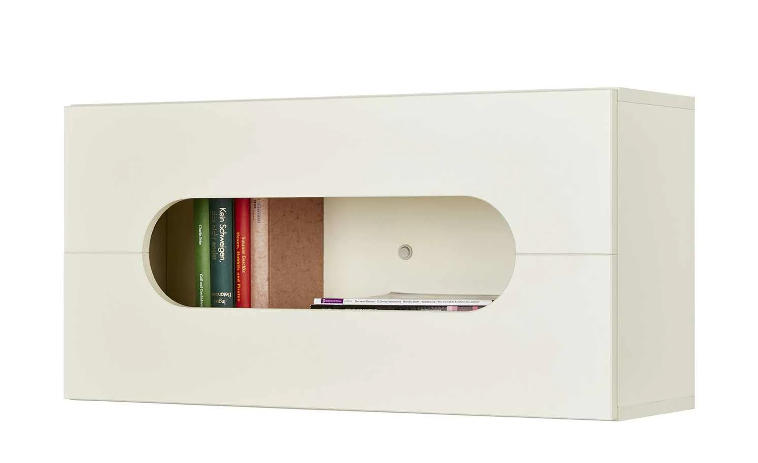 Das Hängeregal Maddox schafft Stauraum an der Wand – und passt zur gleichnamigen Jugendzimmerserie. Maddox verfügt über eine Klappe, die mittig mit einer ovalen Öffnung versehen ist. Hinter der Klappe befinden sich zwei geräumige Fächer. Dank des integrierten Dämpfers schließt die Klappe geräuscharm. Korpus und Front sind beschichtet und deshalb unempfindlich für Kratzer. Maddox ist hochwertig gearbeitet und mit dem Siegel Made in Germany ausgezeichnet.