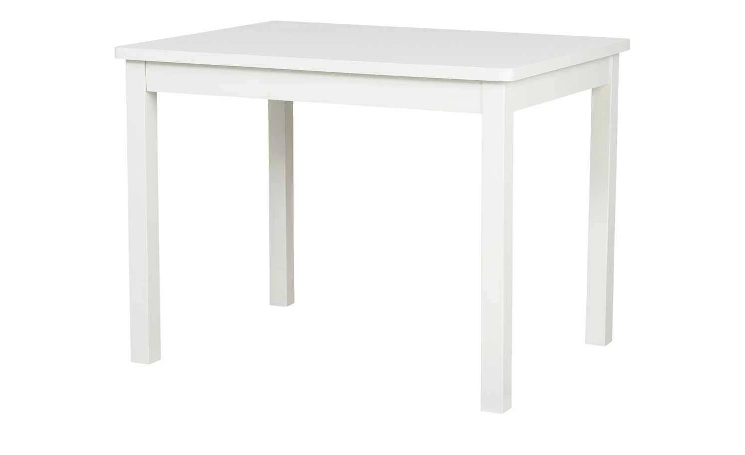 Der in klassischem Weiß gehaltene Kindertisch ist ein solides Möbelstück für das Kinderzimmer. Die Krummteile des Tisches sind aus Massivholz hergestellt und sorgen für die nötige Standfestigkeit. Die weiße Lackierung verleiht dem Tisch eine klassische Eleganz.