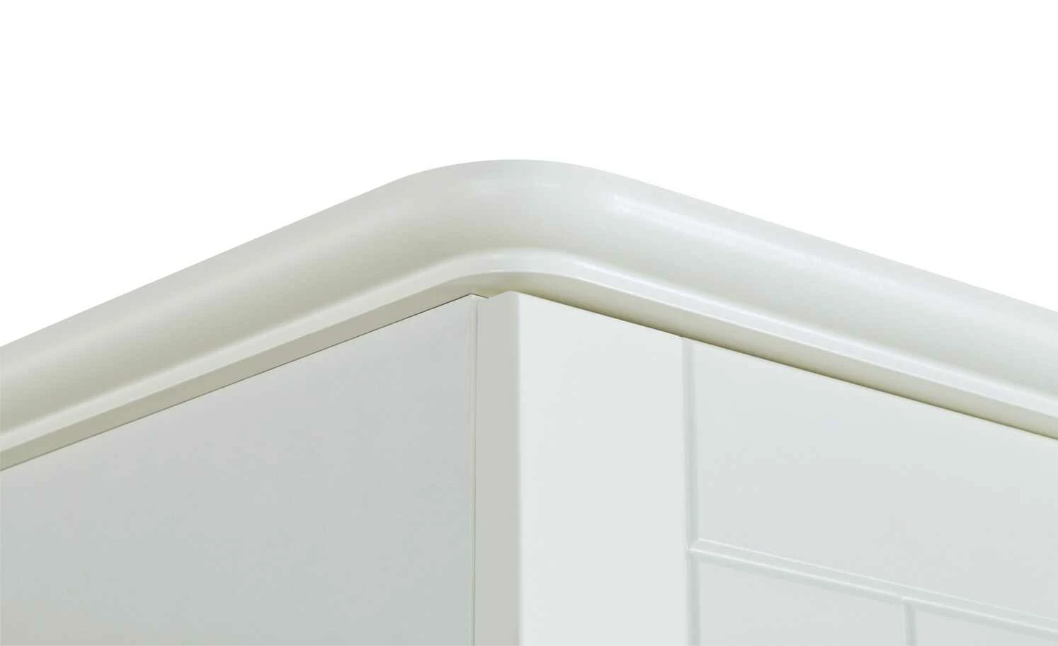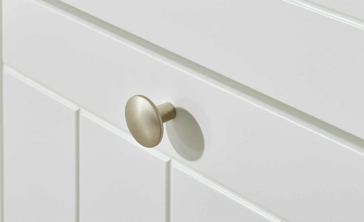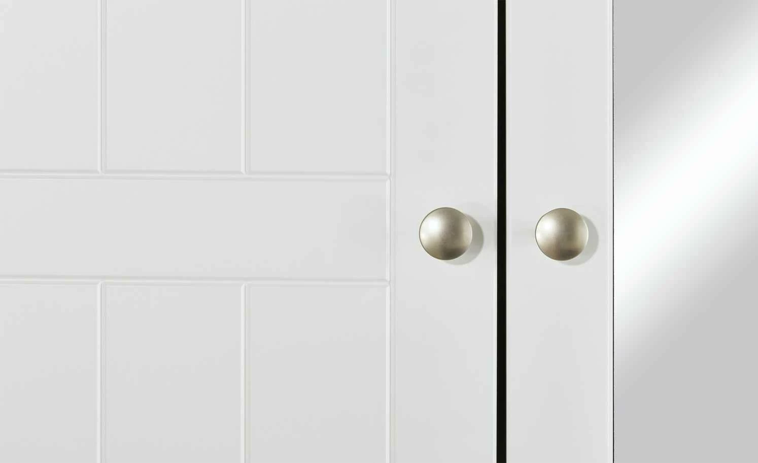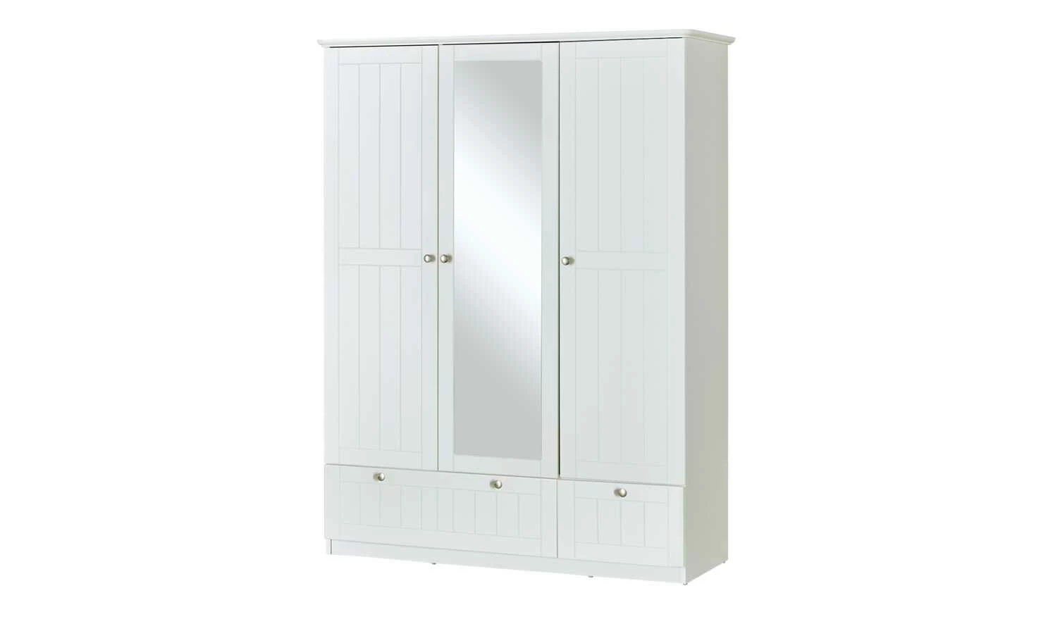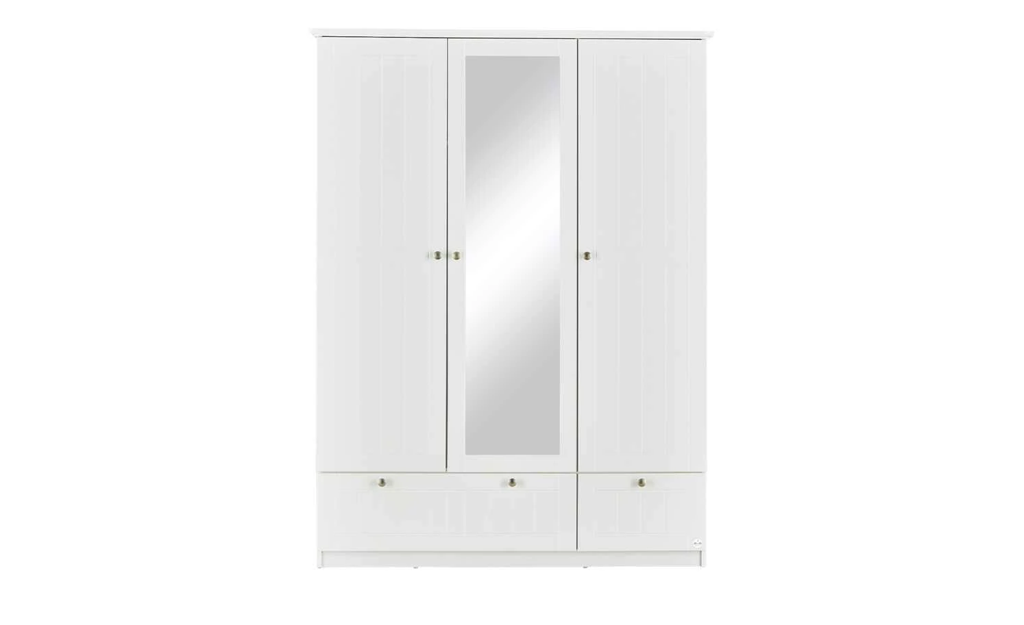 Richten Sie das Kinder- oder Jugendzimmer im Landhausstil ein. Zum Beispiel mit dem Kleiderschrank Suna von Roba. Ausgestattet mit drei Türen bietet der Schrank im Inneren gut aufgeteilten Stauraum für Kleidung und andere Textilien. Unterhalb der Türen befinden sich zwei Schubfächer mit weiterem Stauraum. Türen und Schubladen sind mit Soft-Close-Funktionen ausgestattet. Die besondere Ausstattung sorgt dafür, dass Türen und Schübe geräuscharm schließen. An der mittleren Tür ist ein großer Spiegel angebracht. Runde Knäufe aus Metall setzen Akzente – und setzen sich vom Weiß des Schrankes ab. Suna passt zu den anderen Möbeln der gleichnamigen Serie.