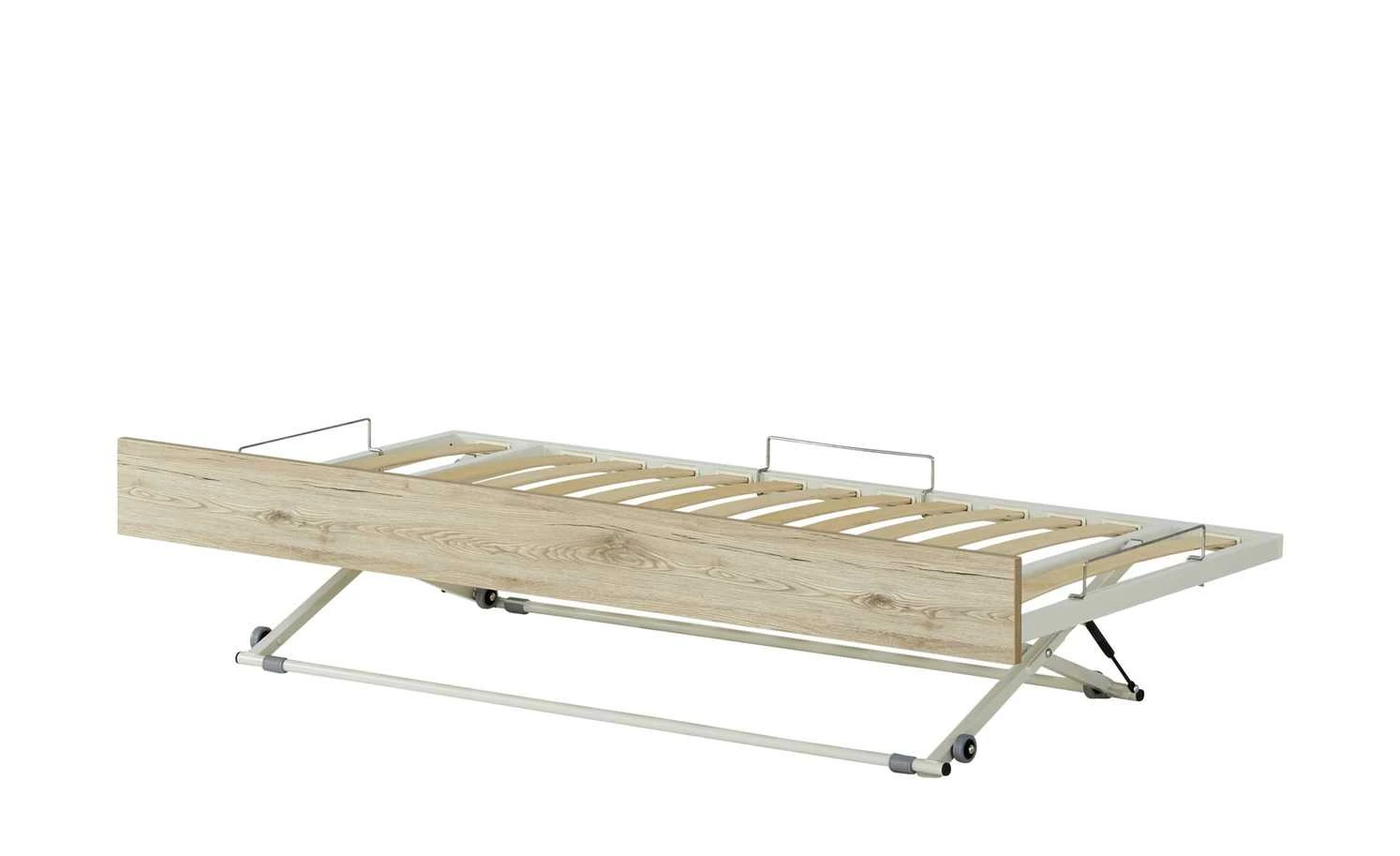 - Mehr zu Ausstattung / Funktion: 13 schichtverleimte Federleisten, für Liegen und Etagenbetten aus dem Programm Fionn, wird mit einem Gurt unter dem Bett hervorgezogen und mittls eines, von Gasdruckfedern unterstützten, Mechanismus nach oben verstellt, Universalrollen, Liegefläche 90×190 cm, max. Matratzenhöhe 11,5 cm