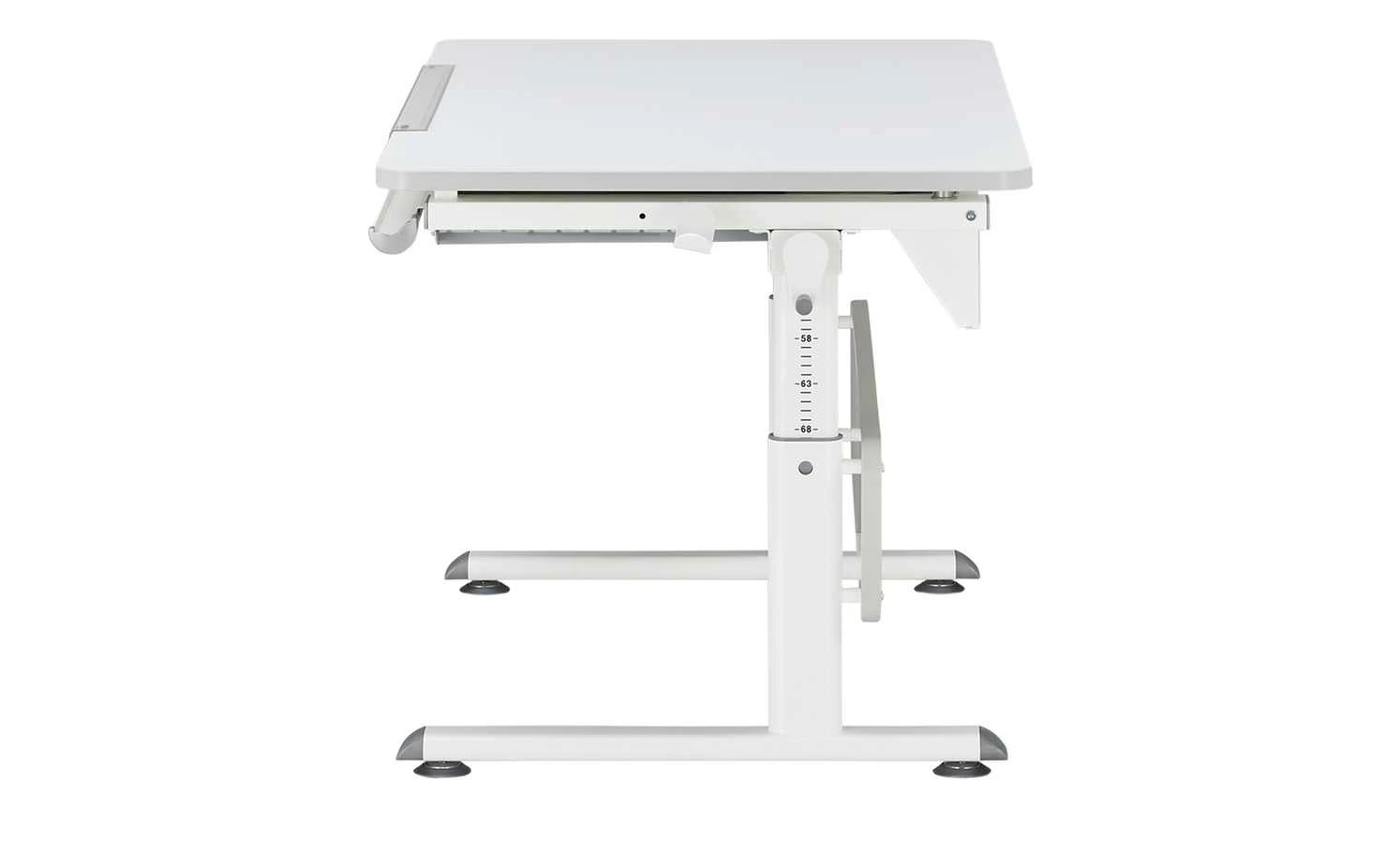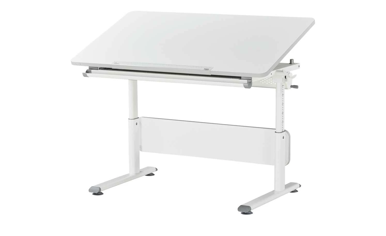 - Mehr zu Ausstattung / Funktion: Ausgestattet mit 60 cm Lineal, Ablagemulde und Taschenhaken, Höhenverstellbar durch Kurbel, Schrägstellung der Tischplatte bis 19° (durch 3 Raster-Scheren)