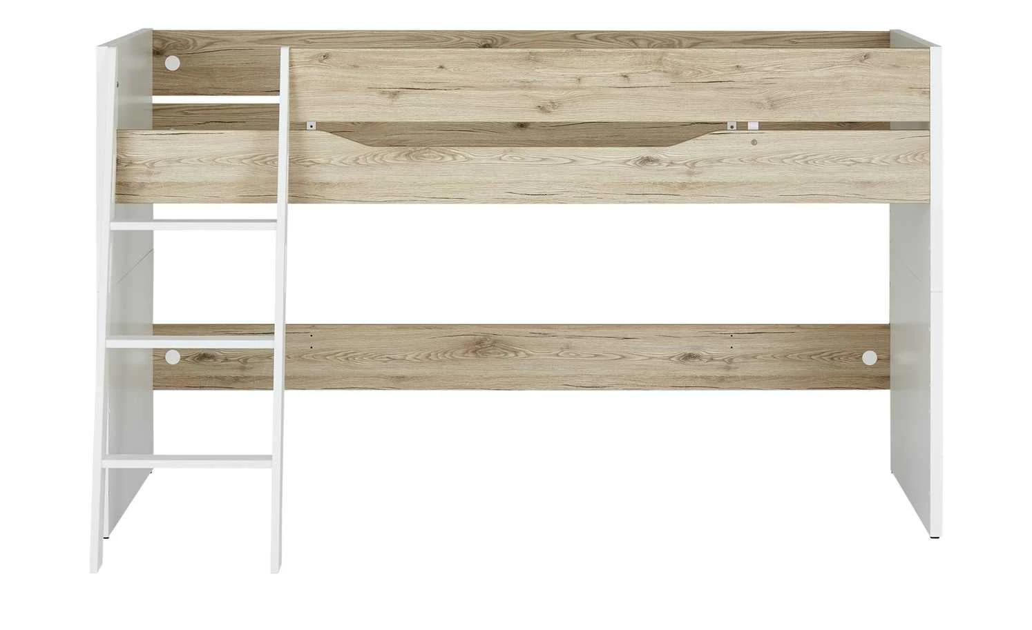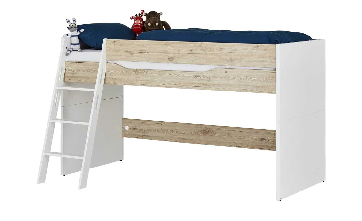 - Mehr zum Material: Oberfläche Bettgestell, Leiter: melaminbeschichtet, Kopf- und Fußteil Sandwichplatten mit HDF (Hochdichte Faserplatte), Deckschicht lackiert