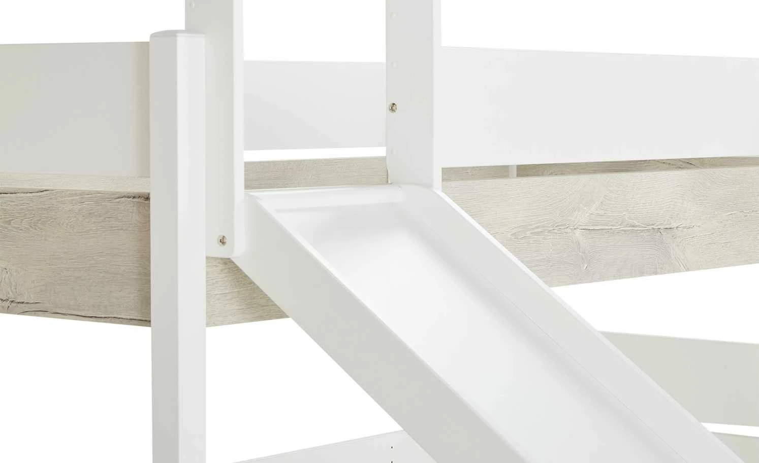 - Mehr zum Material: Absetzung mit Struktur, Material Leiter, Rutsche, Absturzsicherung: Holzwerkstoff beschichtet, Oberfläche melaminbeschichtet
