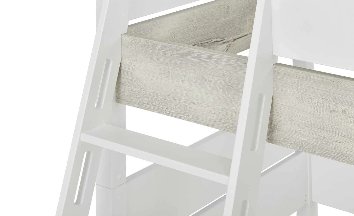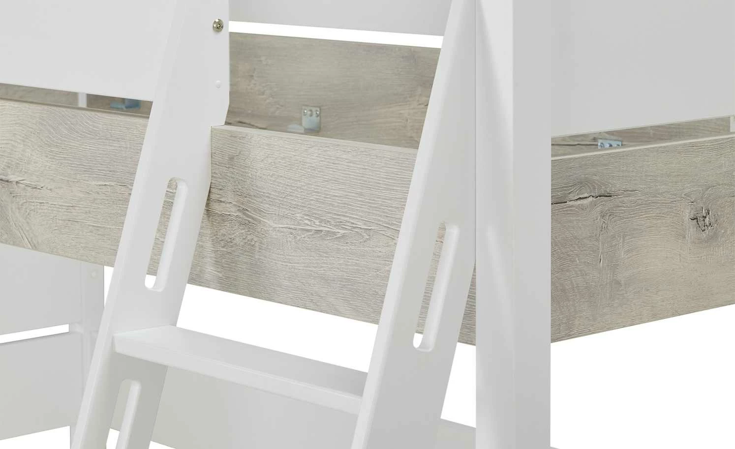 - Mehr zum Material: Absetzung mit Struktur, Material Leiter, Rutsche, Absturzsicherung: Holzwerkstoff beschichtet, Oberfläche melaminbeschichtet