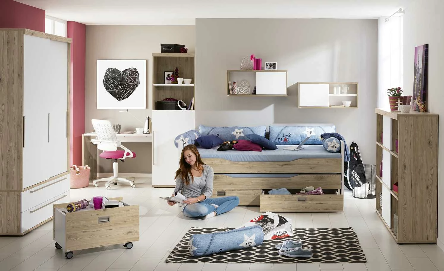 - Farbe / Dekor: Kreideweiß / Eiche Bordeaux (Nachbildung)