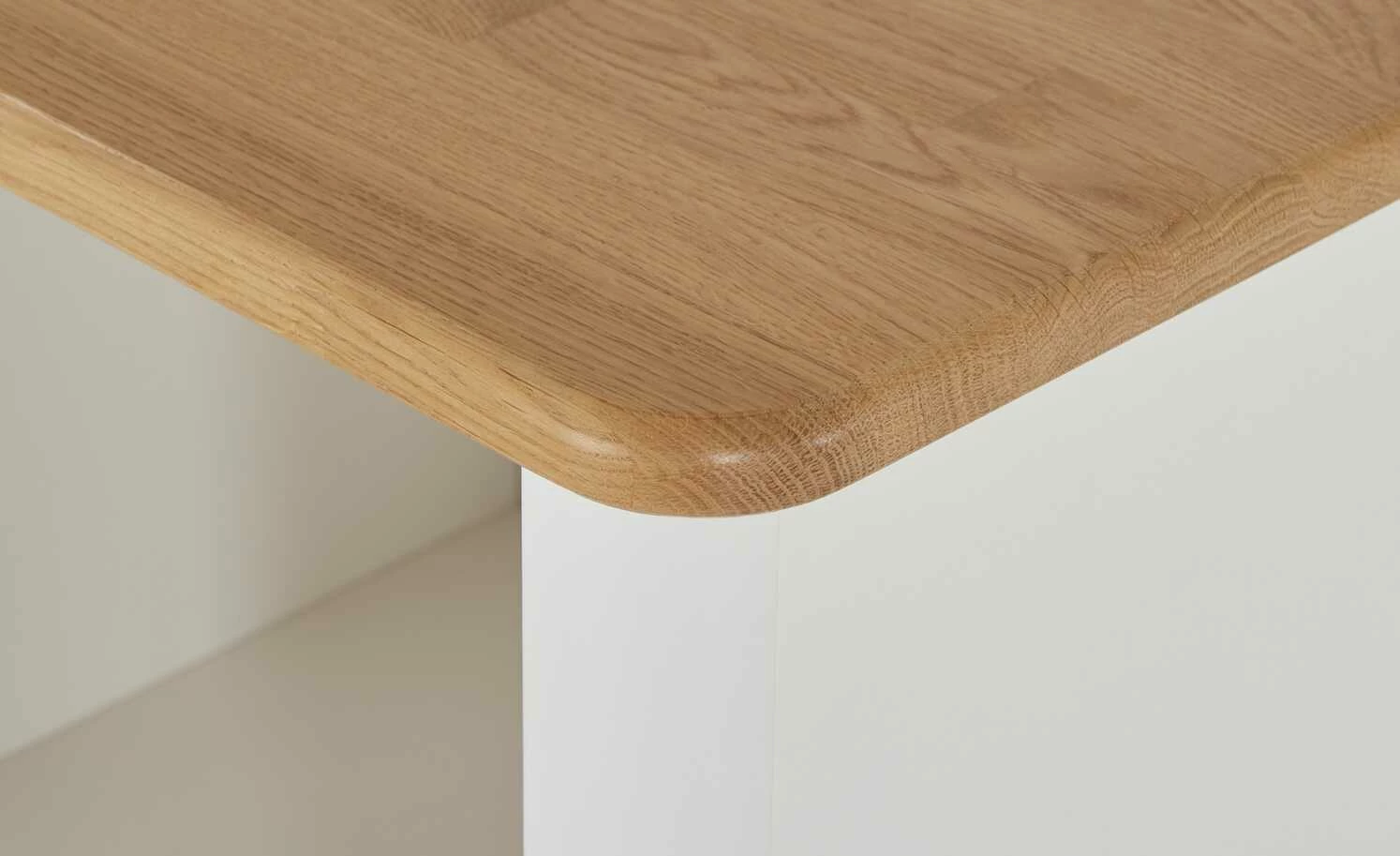 - Mehr zum Material: Material Korpus: Spanplatte, melaminbeschichtet, Material Absetzungen: Massivholz, lackiert
