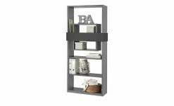 Stylisch geometrisch designt ist das Regal Holly. Es ist weiß und wird durch eine farblich abgesetzte Bauchbinde akzentuiert. Sechs Fächer können Sie für Bücher, gerahmte Fotos oder Deko nutzen.