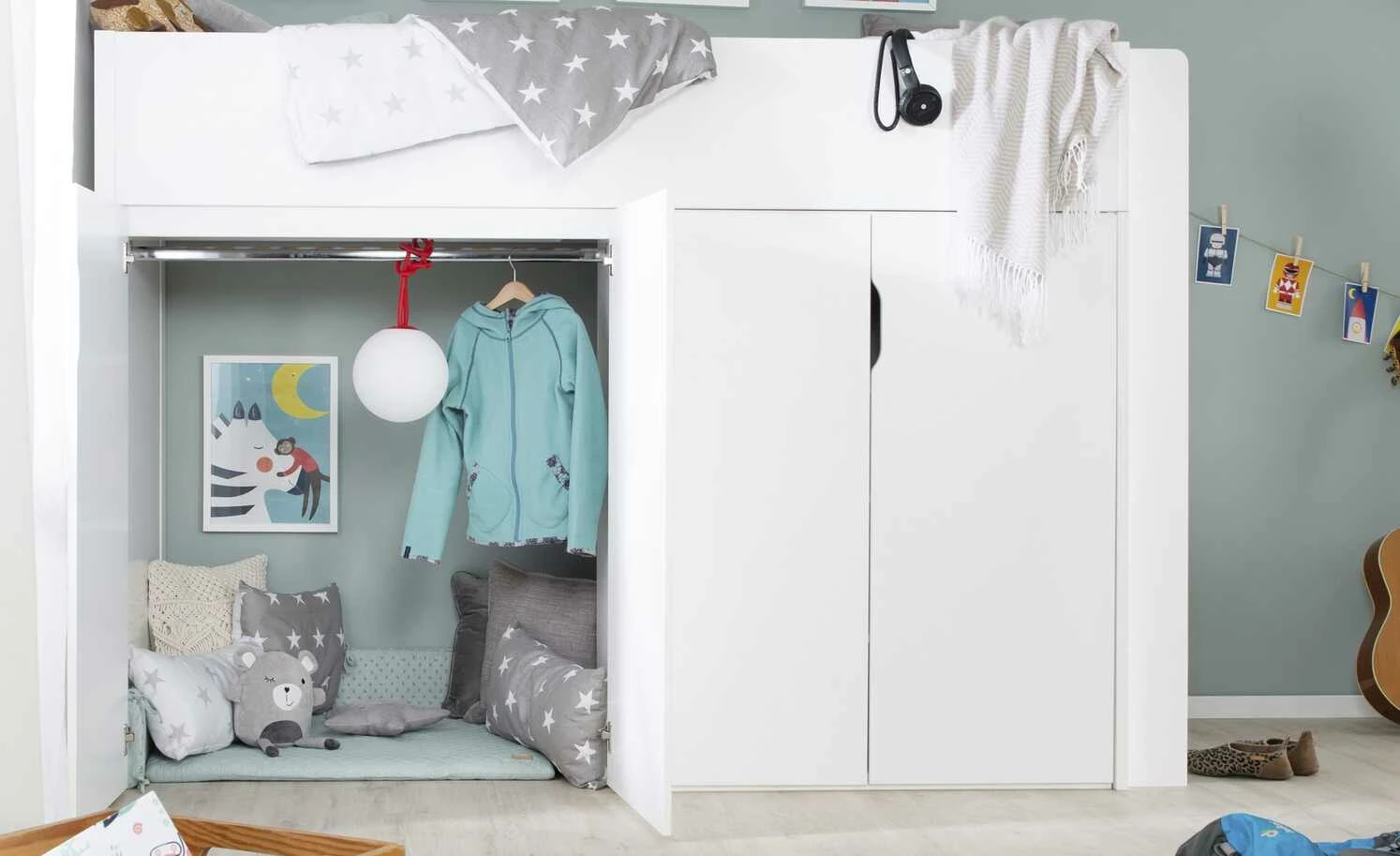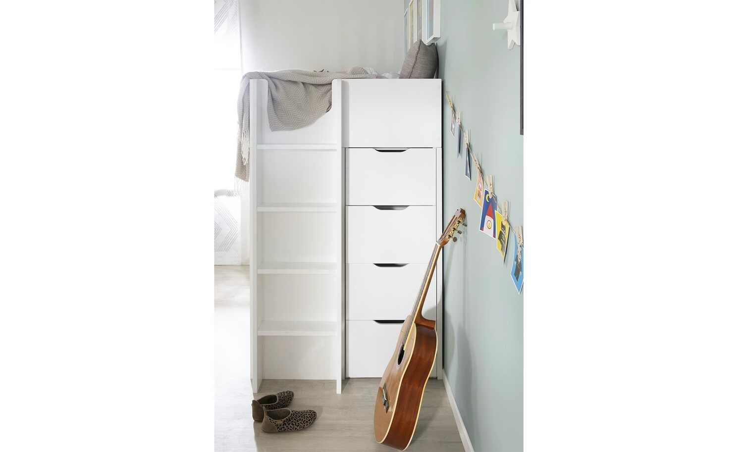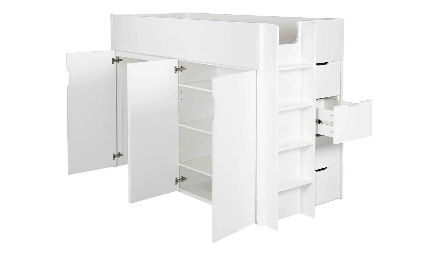 - Mehr zu Ausstattung / Funktion: 4 Schübe, 1 Leiter, 4 Türen und 1 Kleiderstange, 6 Einlegeböden