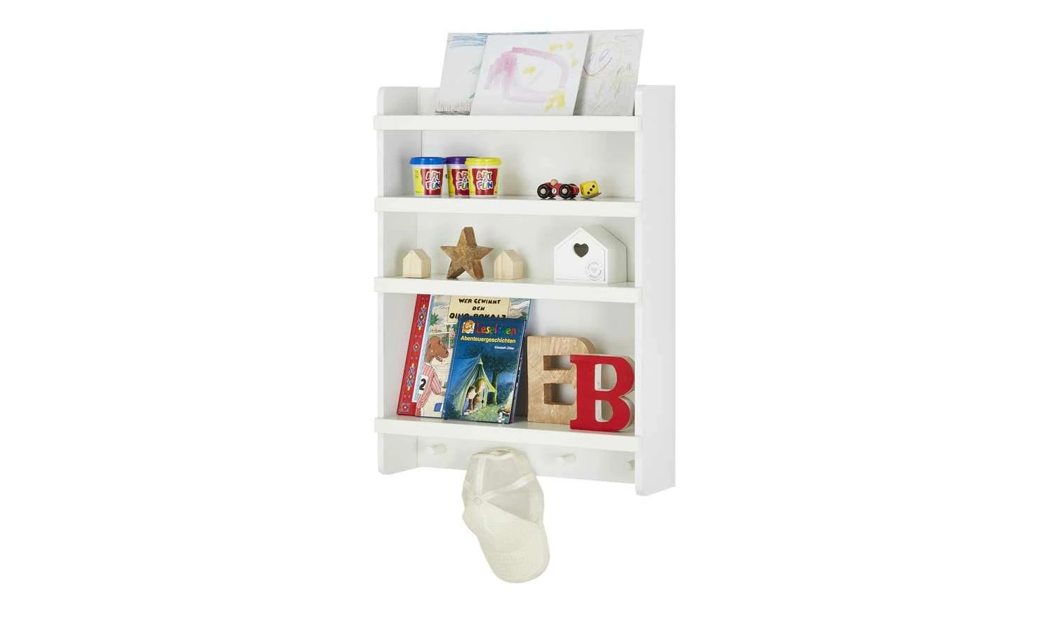 Bücher, Zeitschriften oder Spielzeug – im Wandregal Dreamworld 3 von Roba findet alles seinen Platz. Als Stellfläche dienen vier Böden, die an einem Paneel befestigt sind. Unterhalb des untersten Bodens sind außerdem vier Haken angebracht. Hier können Sie Jacken, Mützen oder Kopfhörer aufhängen. Dreamworld 3 ist mit Melamin beschichtet. Das macht die Oberflächen kratzerunempfindlich und leicht zu pflegen.