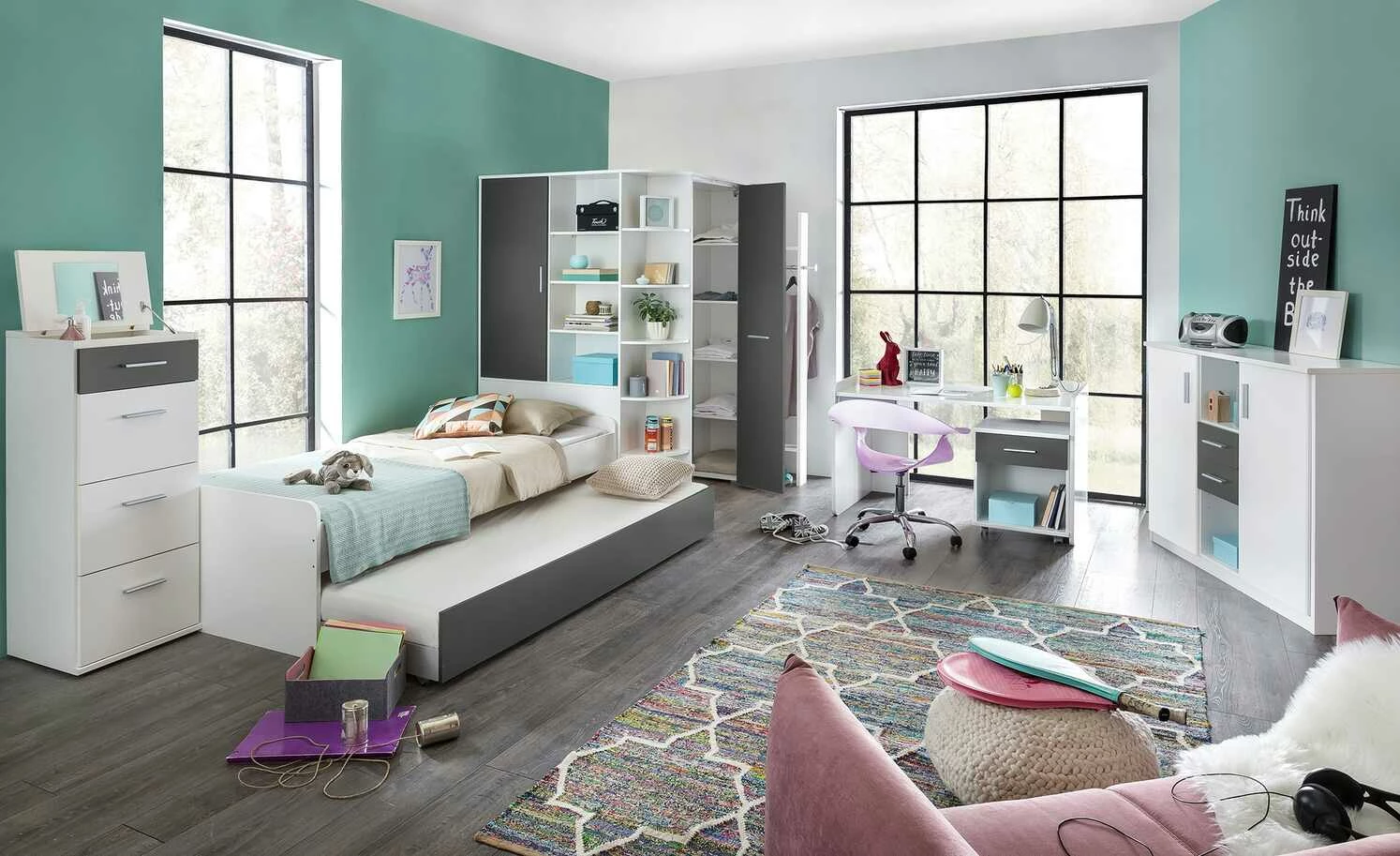 - Farbe / Dekor: Weiß / Graphitgrau