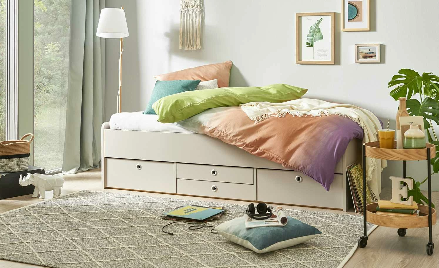 - nicht im Lieferumfang enthalten: Lattenrost und Matratze