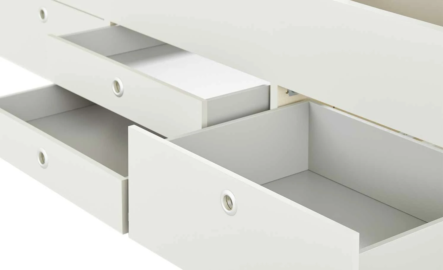 - Mehr zu Ausstattung / Funktion: Mit 2 kleinen und 2 großen Schubkästen für viel Stauraum, Schubkästen mit Grifflöchern