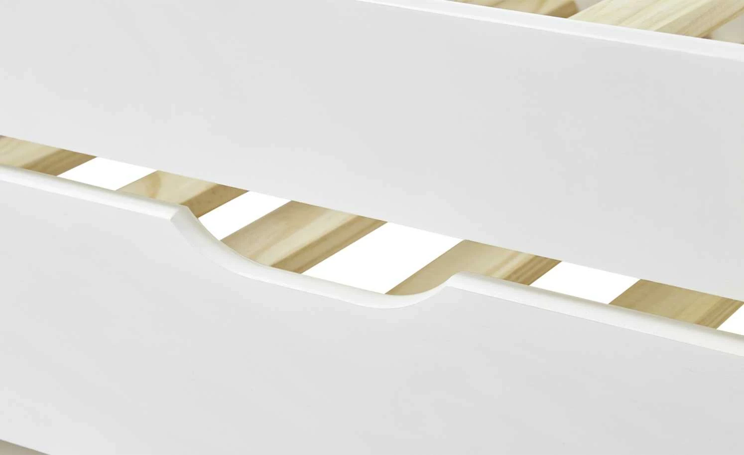 Solis ist ideal für das Kinder- und Jugendzimmer, denn es ist Sofa und Bett in einem. Das Bettgestell ist im Rückenbereich erhöht. Mit ein paar Kissen wird das Bett so zur Couch. Solis ist aus lackiertem Massivholz gefertigt. Praktisch ist auch das zusätzliche Gästebett unterhalb der Liegefläche. Es wird bei Bedarf einfach hervorgerollt. Die passenden Lattenroste sind im Lieferumfang enthalten.