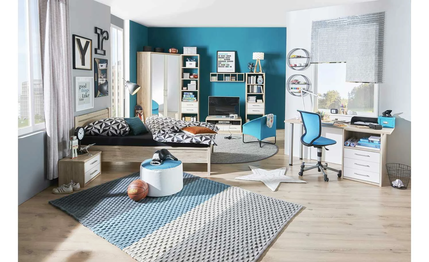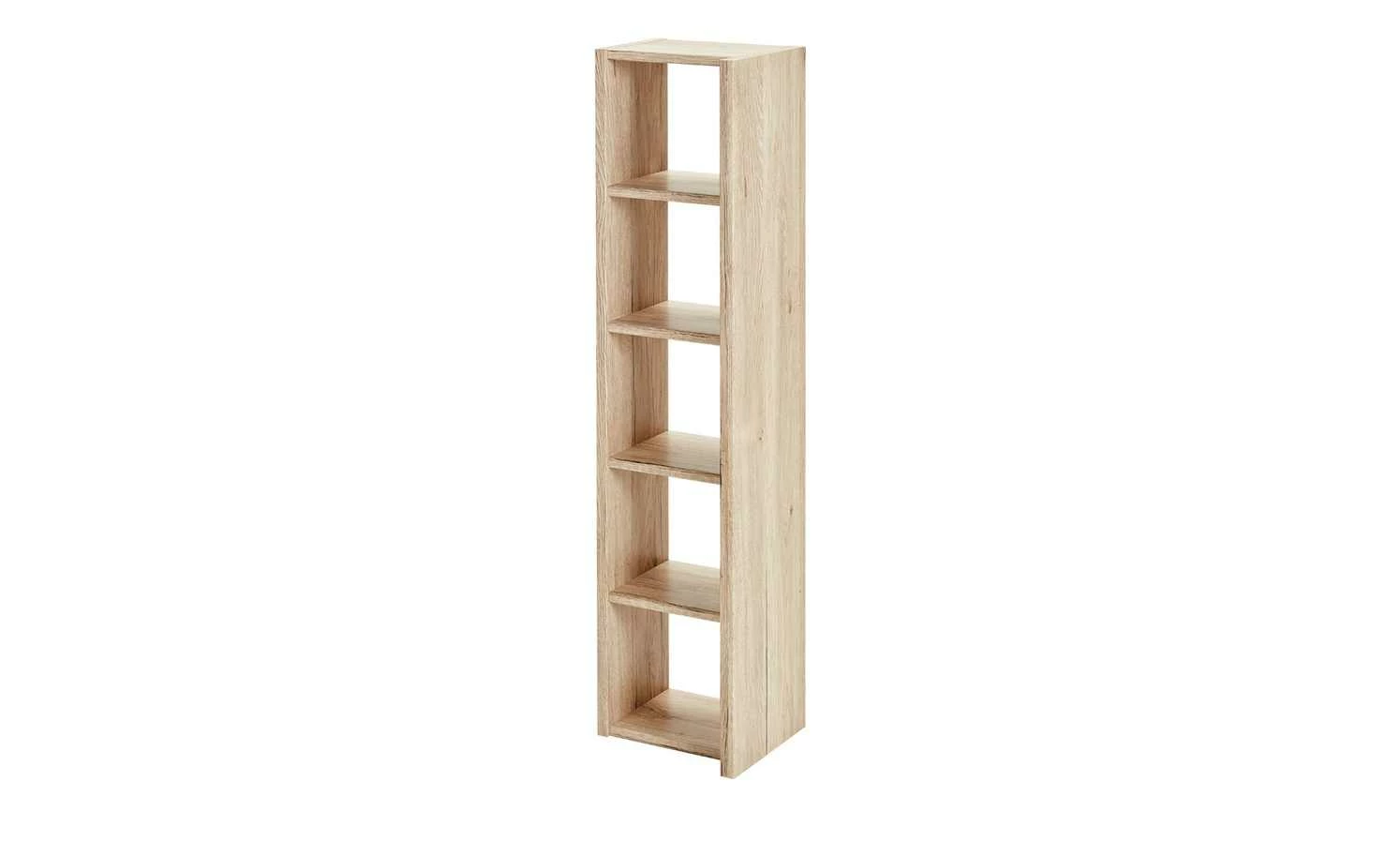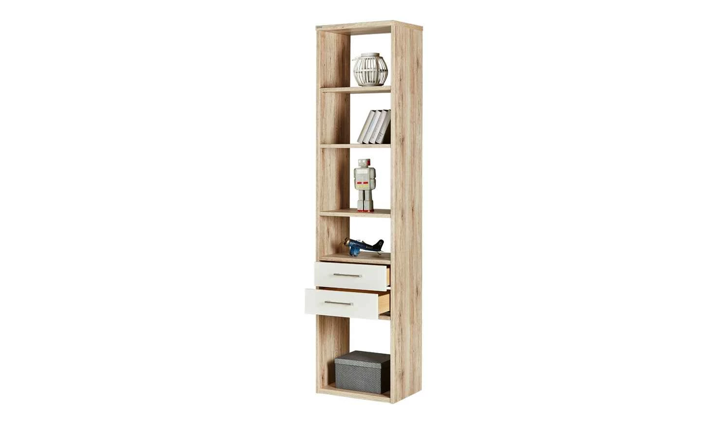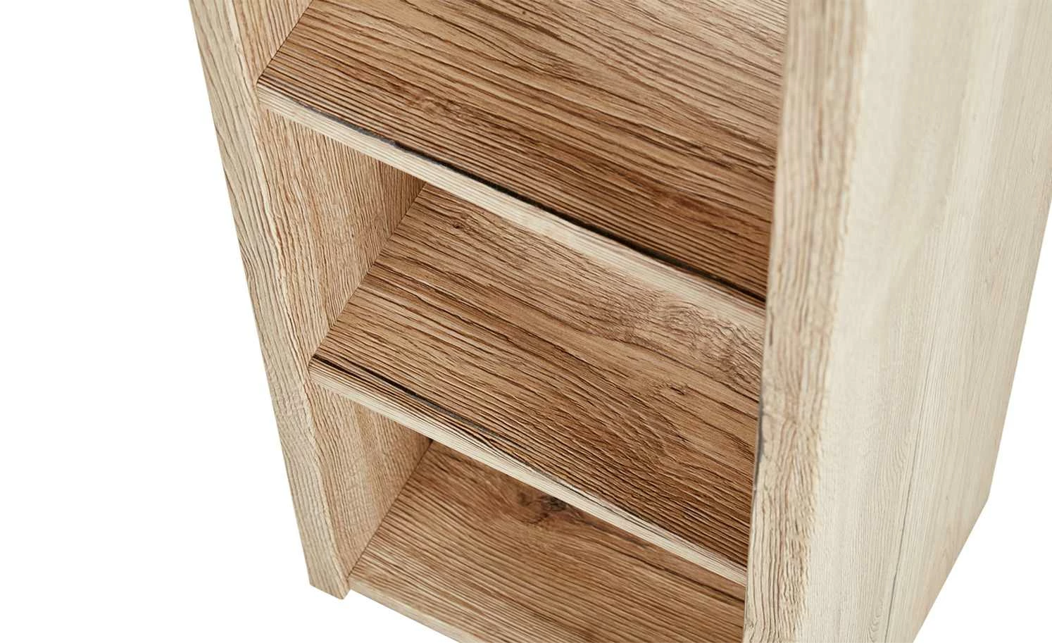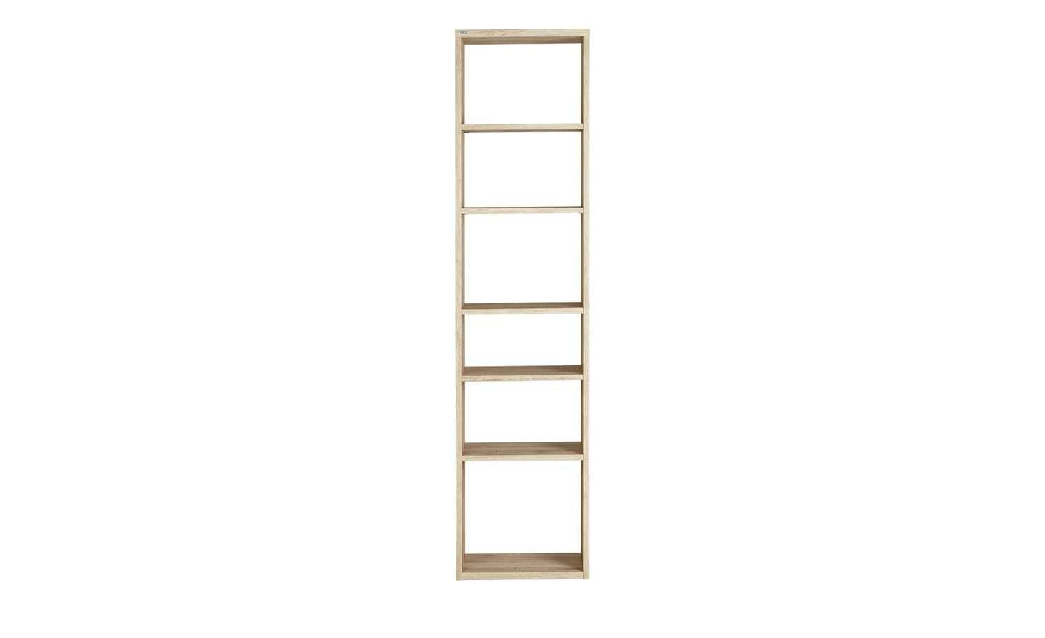 Platz für jede Menge Bücher – den bietet das Standregal Arne. Gleich sechs Fächer können mit den Schmökern befüllt werden. Arne hat keine Rückwand. Durch die offene Gestaltung können Sie das Regal auch als Raumteiler nutzen. Das Regal ist in Eiche San Remo (Nachbildung) gehalten und passt so gut zu den anderen Möbeln der Jugendzimmerserie.