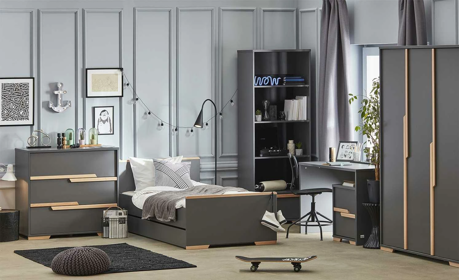 Regale im Kinderzimmer sind praktisch für Bücher oder Spielzeug. Passend zur Serie Soe ist dieses gleichnamige Standregal. Es verfügt über vier offene Fächer, deren Einlegeböden in der Höhe verstellt werden können. Zudem steht Ihnen eine Schublade zur Verfügung, die mit einer Soft-Close-Funktion ausgestattet ist. Während die Front lackiert worden ist, hat der Korpus eine laminierte Oberfläche. Die Ränder sind durch den Laserschnitt des Laminats besonders ebenmäßig.