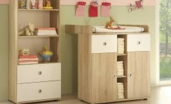 Vier offene Fächer hat das Standregal Wiki. Zusätzlich können Sie zwei Schubfächer nutzen. Korpus und Böden in Eiche Sonoma (Nachbildung) werden durch die weißen Schübe abgesetzt. Sie können Wiki wunderbar für Kinderbücher und Spielwaren nutzen.