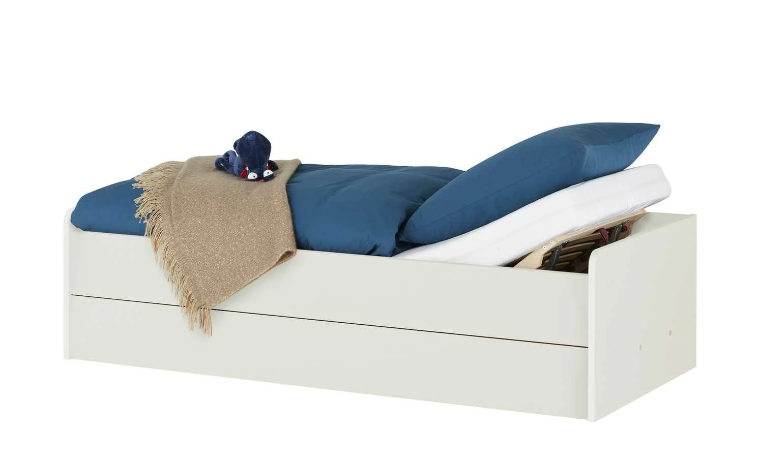 - Ausstattung / Funktion: Bettkasten, manuelle Kopfteilverstellung