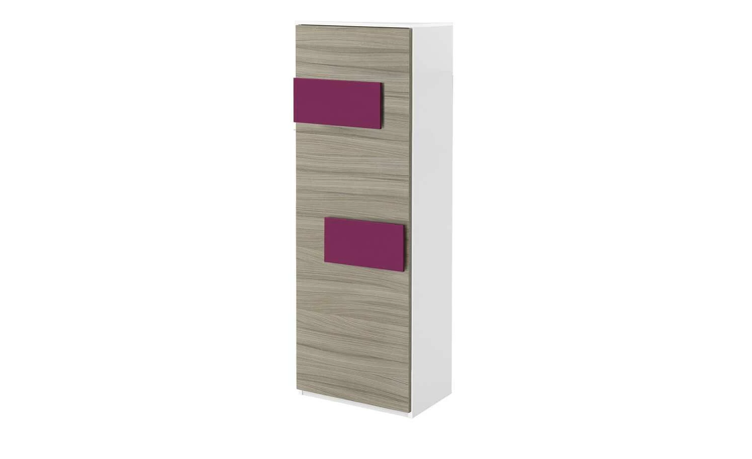 Wie der Name bereits verrät sorgt das Stauraumelement Holly für viel Stauraum. So sorgt es für Ordnung im Kinder- und Jugendzimmer. Dank der Tür ist der Inhalt der Fächer innen vor neugierigen Blicken geschützt. Und auch Staub muss draußen bleiben. Korpus und Front sind mit Melamin beschichtet. Das macht Holly unempfindlich und pflegeleicht. Geometrische Frontabsetzungen geben dem Schrank einen jungen, frechen Look.