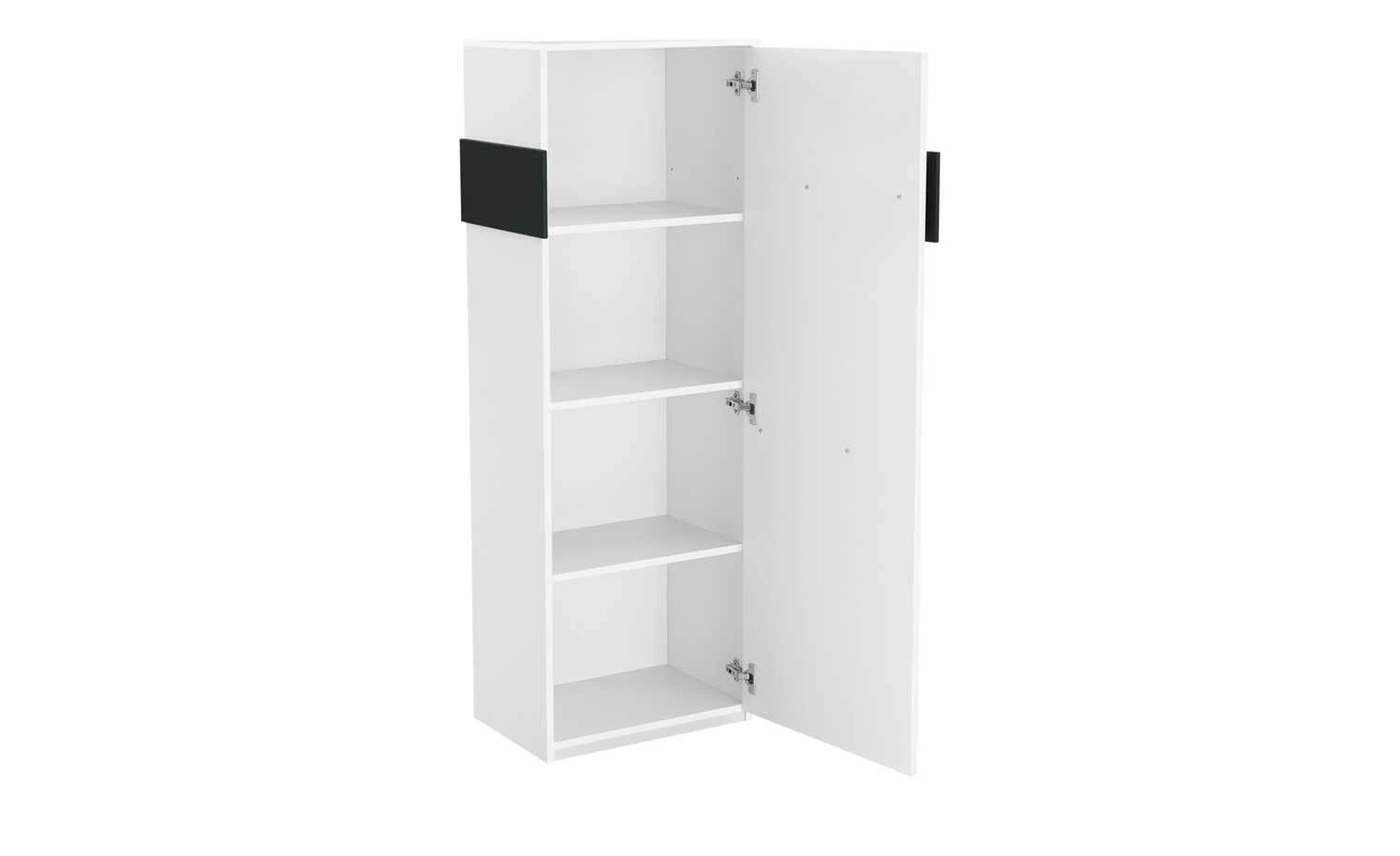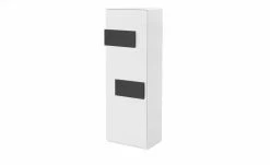 Wie der Name bereits verrät sorgt das Stauraumelement Holly für viel Stauraum. So sorgt es für Ordnung im Kinder- und Jugendzimmer. Dank der Tür ist der Inhalt der Fächer innen vor neugierigen Blicken geschützt. Und auch Staub muss draußen bleiben. Korpus und Front sind mit Melamin beschichtet. Das macht Holly unempfindlich und pflegeleicht. Geometrische Frontabsetzungen geben dem Schrank einen jungen, frechen Look.