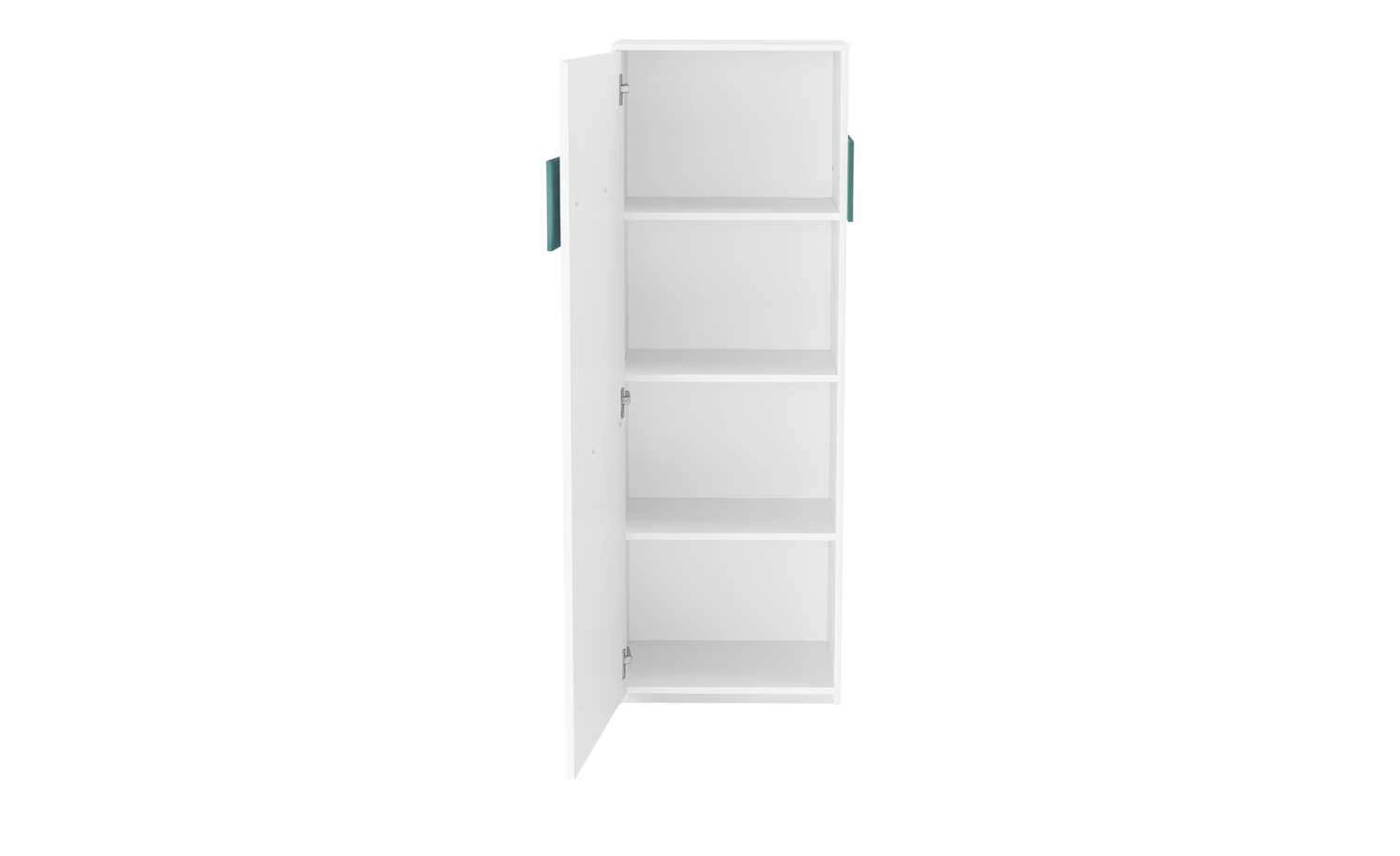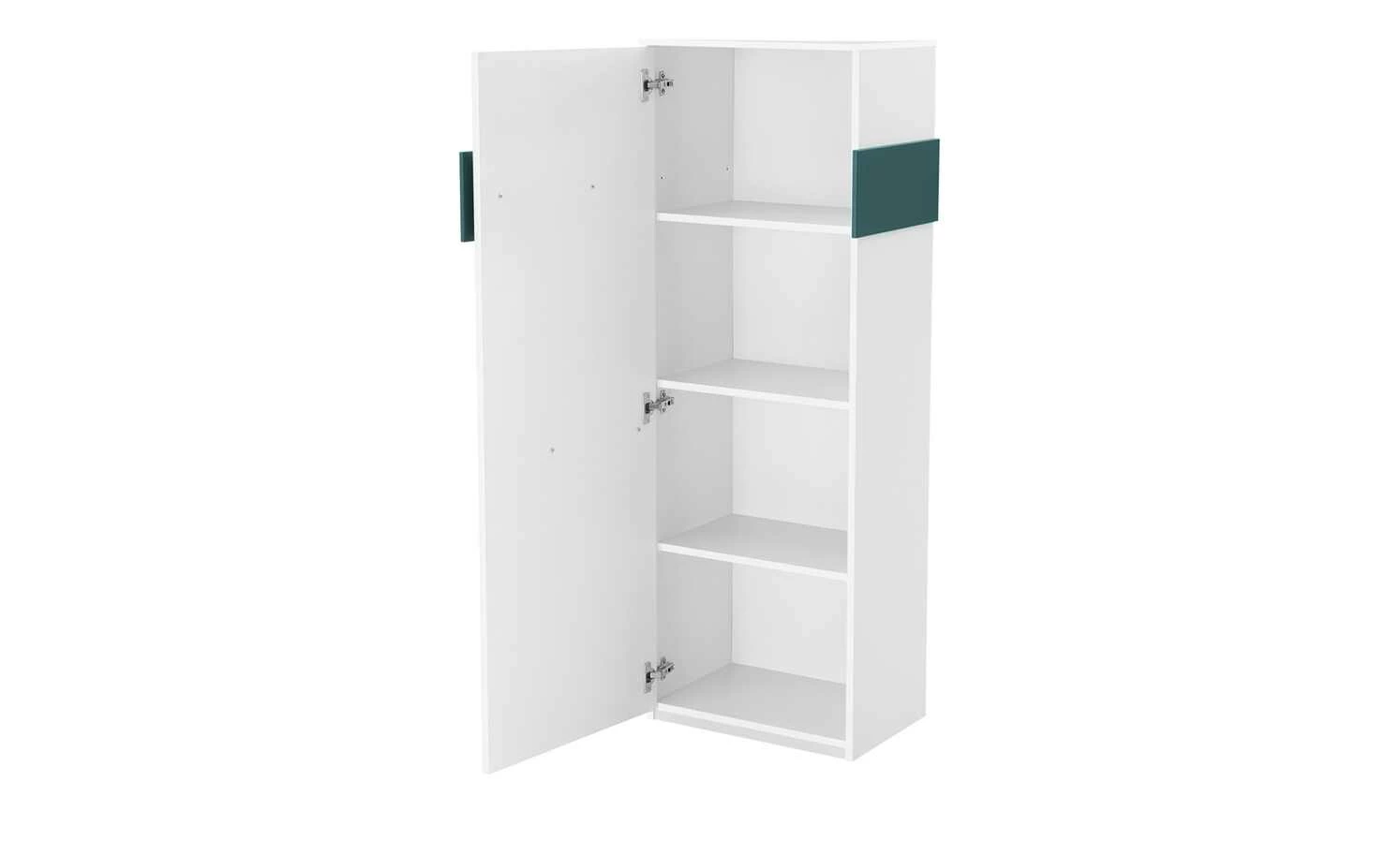 Wie der Name bereits verrät sorgt das Stauraumelement Holly für viel Stauraum. So sorgt es für Ordnung im Kinder- und Jugendzimmer. Dank der Tür ist der Inhalt der Fächer innen vor neugierigen Blicken geschützt. Und auch Staub muss draußen bleiben. Korpus und Front sind mit Melamin beschichtet. Das macht Holly unempfindlich und pflegeleicht. Geometrische Frontabsetzungen geben dem Schrank einen jungen, frechen Look.