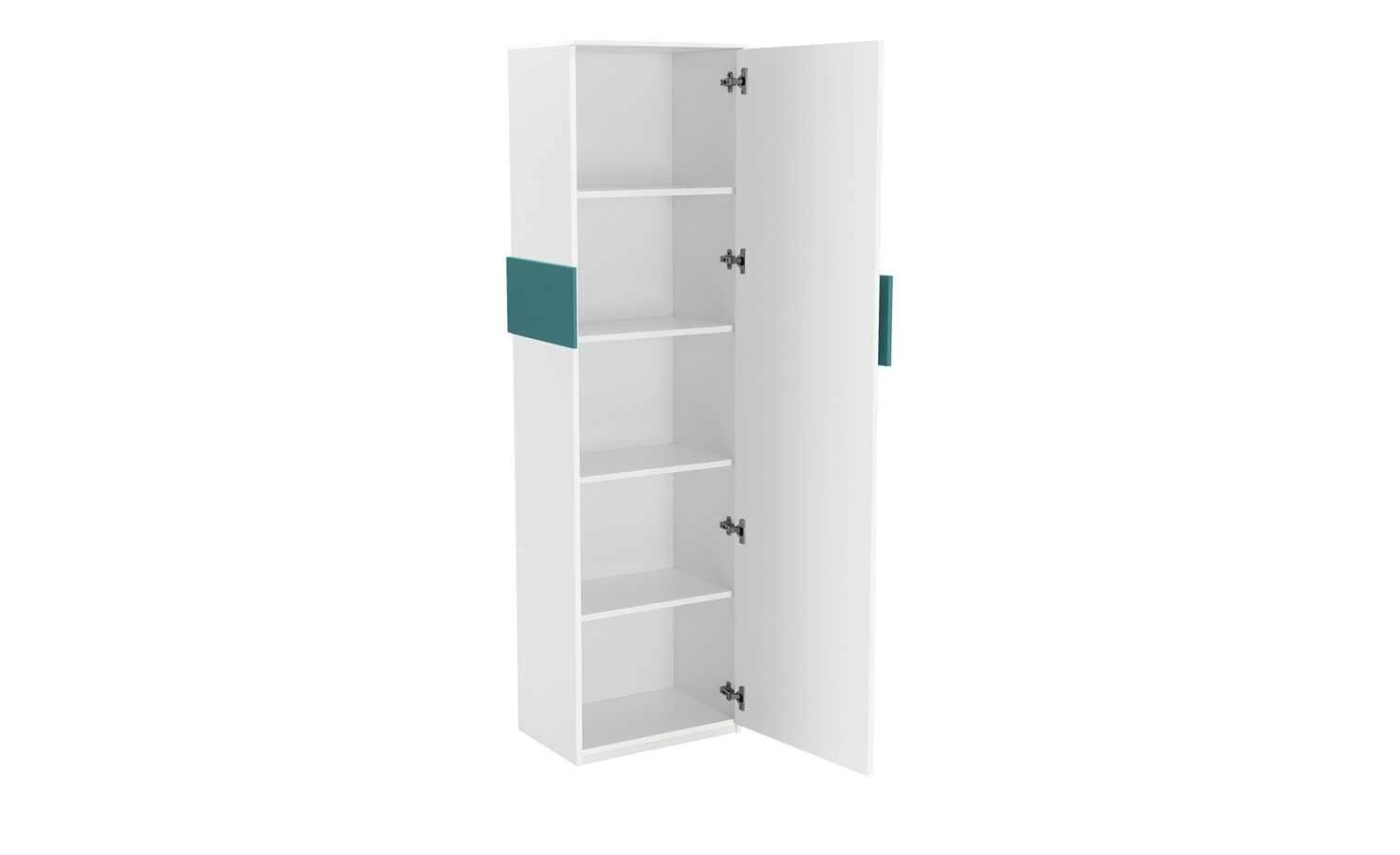 Wie der Name bereits verrät sorgt das Stauraumelement Holly für viel Stauraum. So sorgt es für Ordnung im Kinder- und Jugendzimmer. Dank der Tür ist der Inhalt der Fächer innen vor neugierigen Blicken geschützt. Und auch Staub muss draußen bleiben. Korpus und Front sind mit Melamin beschichtet. Das macht Holly unempfindlich und pflegeleicht. Geometrische Frontabsetzungen geben dem Schrank einen jungen, frechen Look.