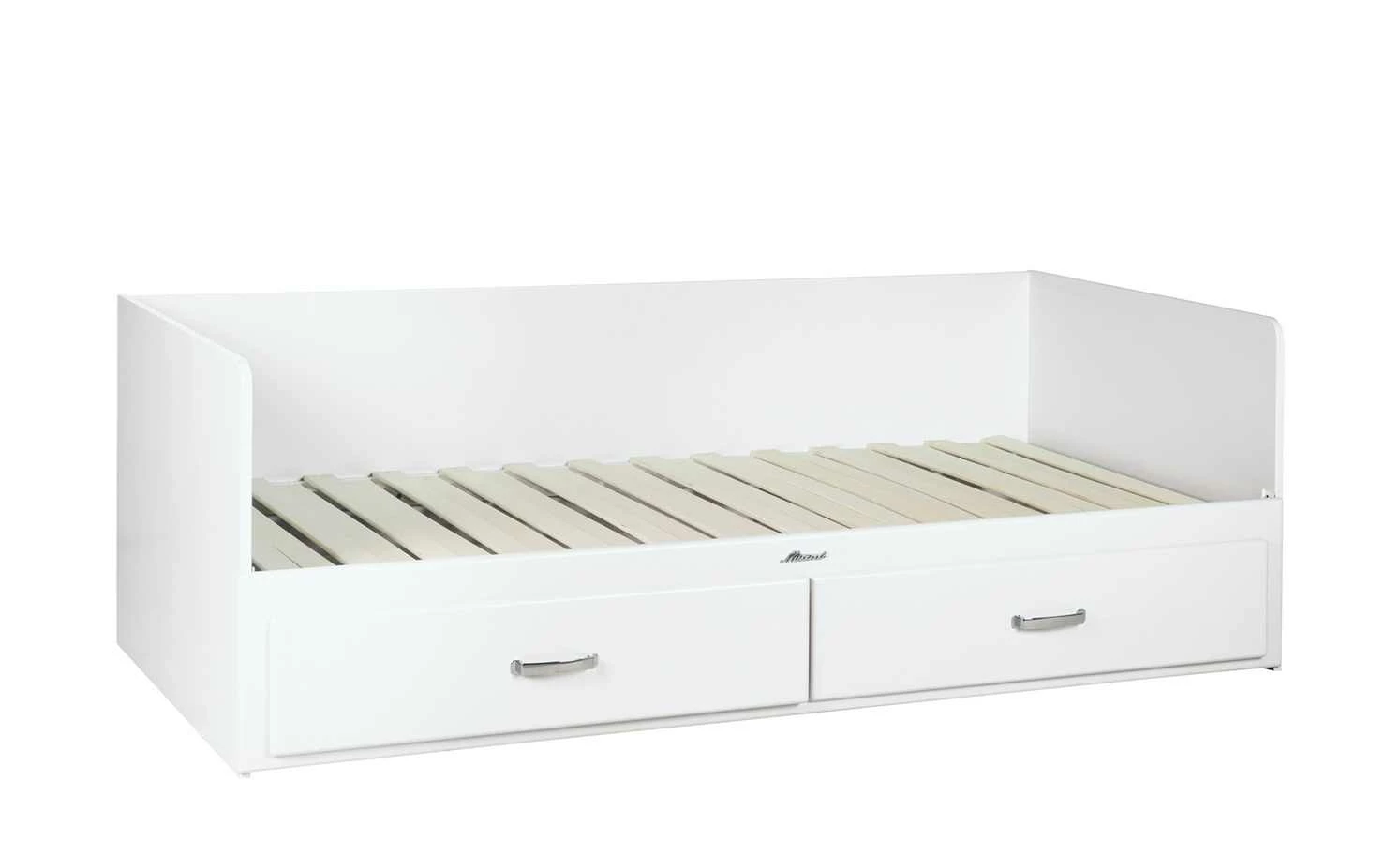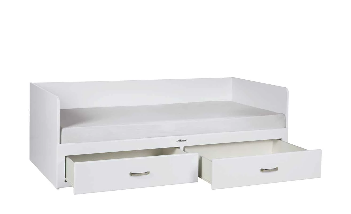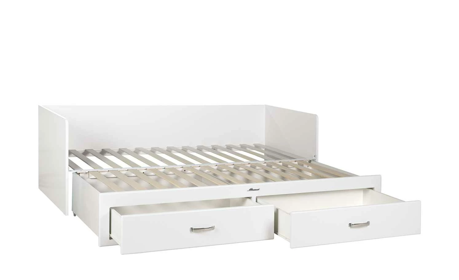 - Mehr zu Ausstattung / Funktion: 2 Schubkästen mit Metallgriffen, ausziehbar zum Doppelbett (Liegefläche ca. 180×200), ABS-Kanten