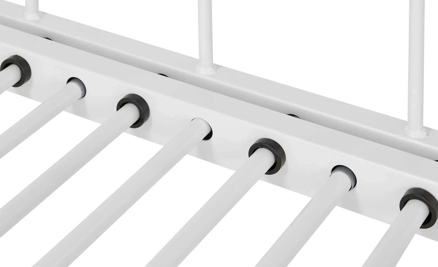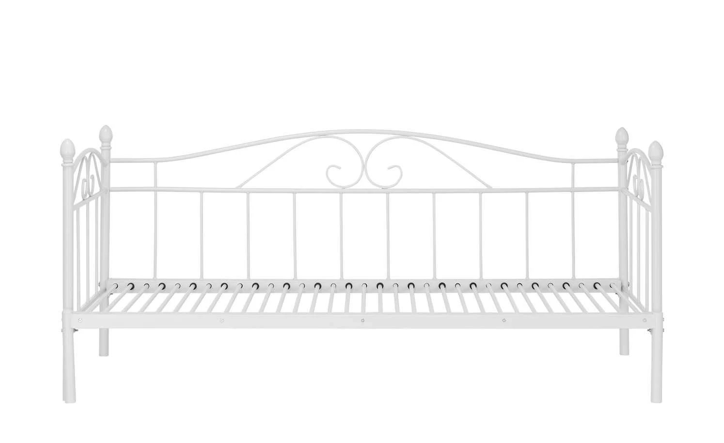 Das Tagesbett Harrow hat ein romantisch verspieltes Design in Weiß. Es ist komplett aus pulverbeschichtetem Metall gefertigt. Praktisch: Die 90 Zentimeter breite Liegefläche kann auf große 180 Zentimeter ausgezogen werden. Der sogenannte Gestellauszug macht es möglich. Sie können Harrow mit Matratzen nach Wahl ergänzen; sie sind separat erhältlich.